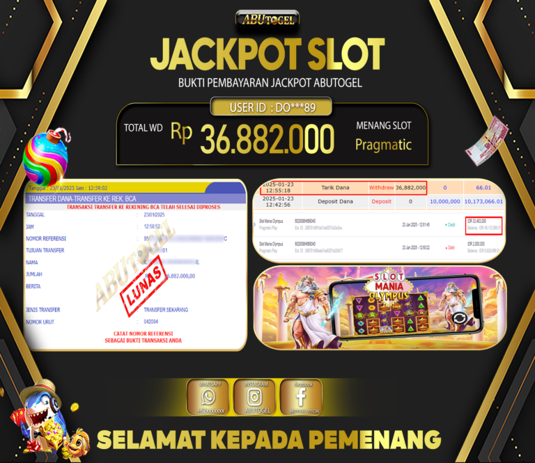 Bukti Jackpot ABUTOGEL Slot Online Kamis 23 Januari 2025 - ABUTOGEL adalah situs slot gacor maxwin terpercaya. Berikut ini kami berikan...