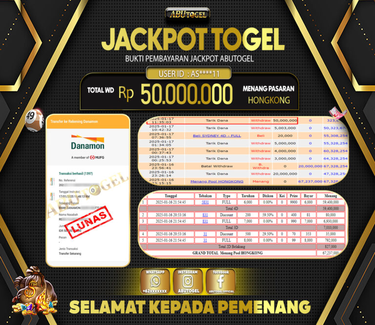 Bukti Jackpot Togel Online ABUTOGEL Senin 20 Januari 2025 - ABUTOGEL adalah bo togel onlinne terpercaya. Berikut ini kami berikan info...