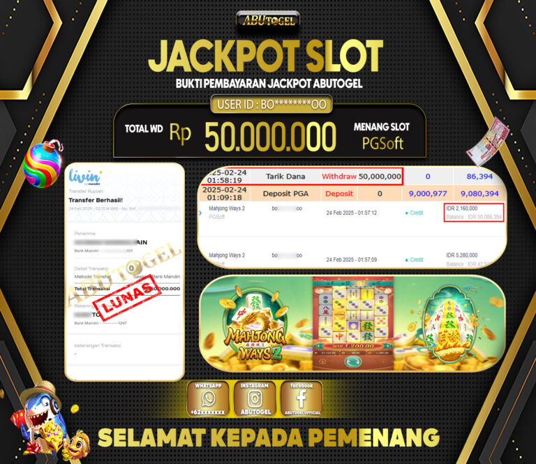Bukti Jackpot ABUTOGEL Slot Online Sabtu 22 Februari 2025 - ABUTOGEL adalah situs slot gacor maxwin terpercaya. Berikut ini kami berikan...