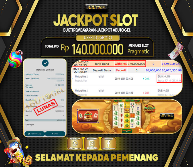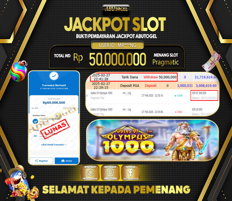 Bukti Jackpot ABUTOGEL Slot Online Kamis 27 Februari 2025 - ABUTOGEL adalah situs slot gacor maxwin terpercaya. Berikut ini kami berikan...