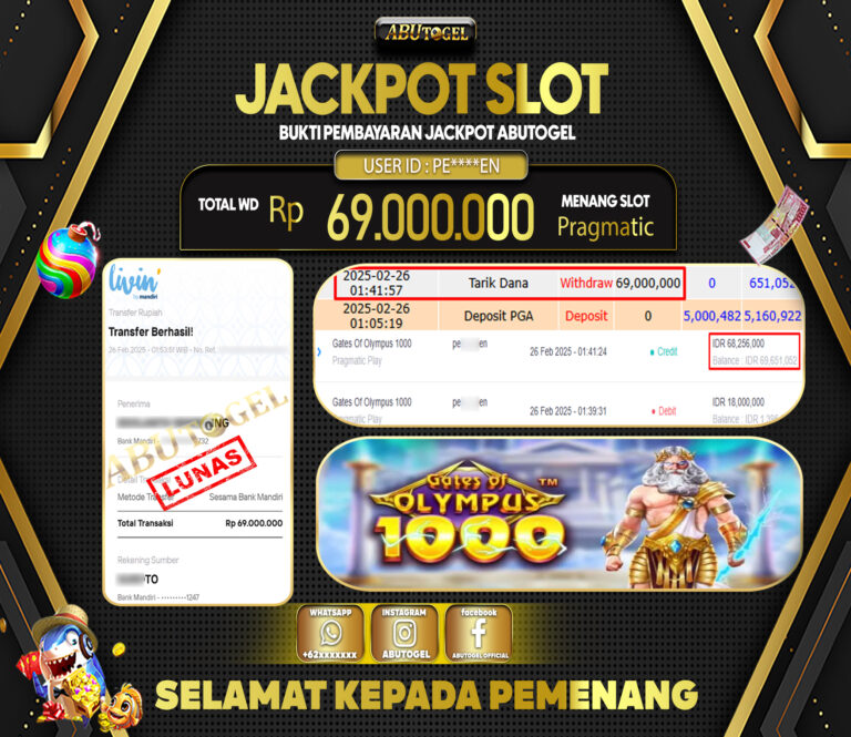 Bukti Jackpot ABUTOGEL Slot Online Rabu 26 Februari 2025 - ABUTOGEL adalah situs slot gacor maxwin terpercaya. Berikut ini kami berikan...