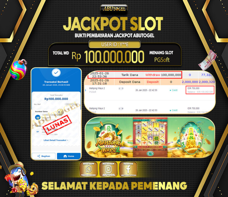 Bukti Jackpot ABUTOGEL Slot Online Minggu 26 Januari 2025 - ABUTOGEL adalah situs slot gacor maxwin terpercaya. Berikut ini kami berikan...