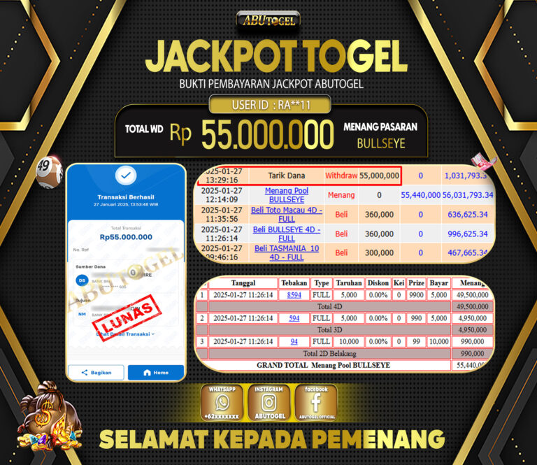 Bukti Jackpot Togel Online ABUTOGEL Senin 27 Januari 2025 - ABUTOGEL adalah bo togel onlinne terpercaya. Berikut ini kami berikan info...