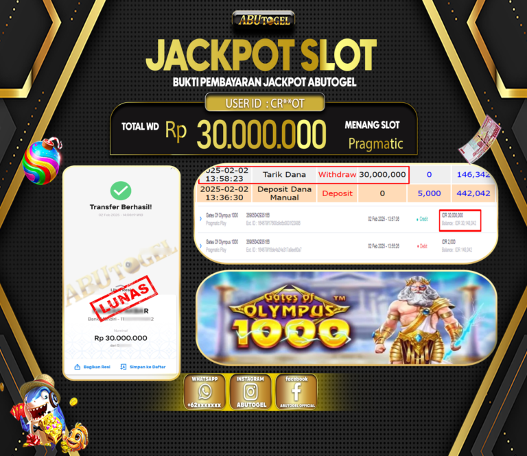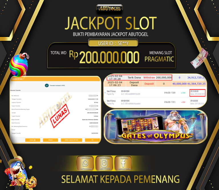 Bukti Jackpot ABUTOGEL Slot Online Minggu 02 Febuari 2025 - ABUTOGEL adalah situs slot gacor maxwin terpercaya. Berikut ini kami berikan...