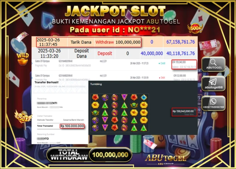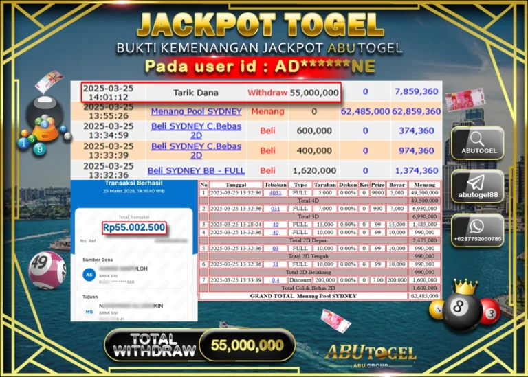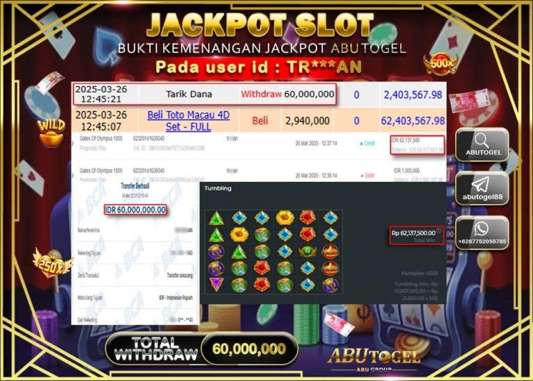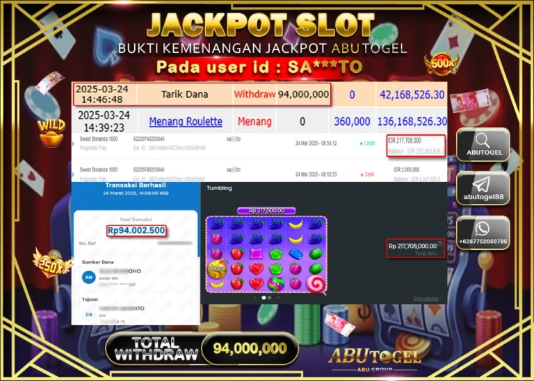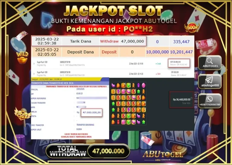 Bukti Jackpot ABUTOGEL Slot Online Sabtu 22 Maret 2025 - ABUTOGEL adalah situs slot gacor maxwin terpercaya. Berikut ini kami berikan...