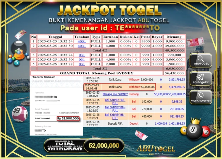 Bukti Jackpot Togel Online ABUTOGEL Selasa 25 Maret 2025 - ABUTOGEL adalah bo togel onlinne terpercaya. Berikut ini kami berikan info...