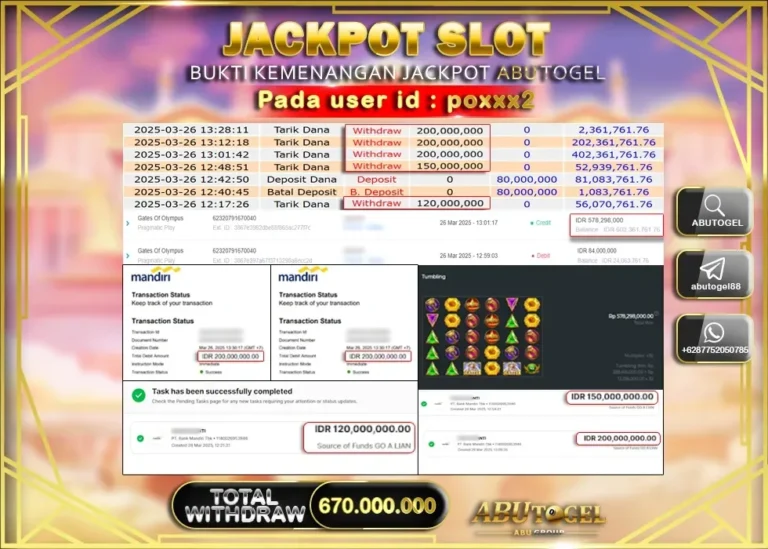 Bukti Jackpot ABUTOGEL Slot Online Rabu 26 Maret 2025 - ABUTOGEL adalah situs slot gacor maxwin terpercaya. Berikut ini kami berikan...