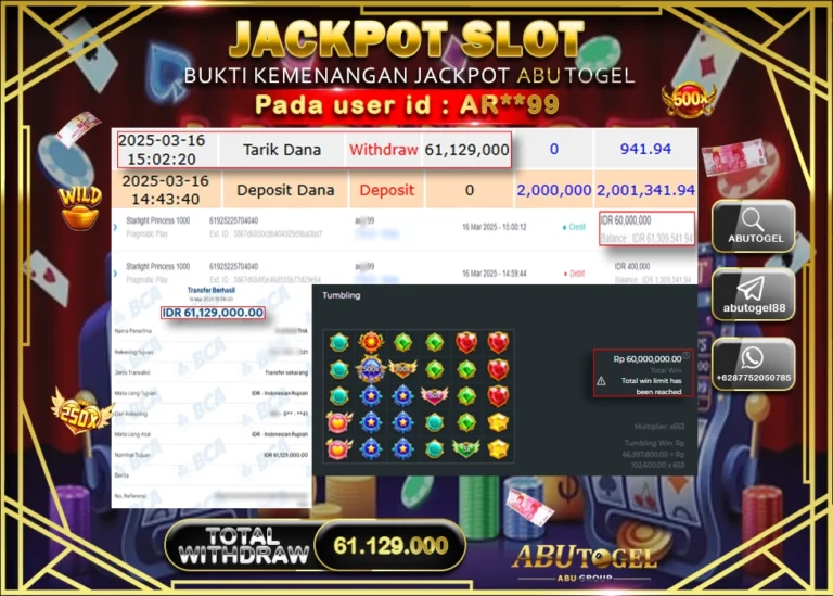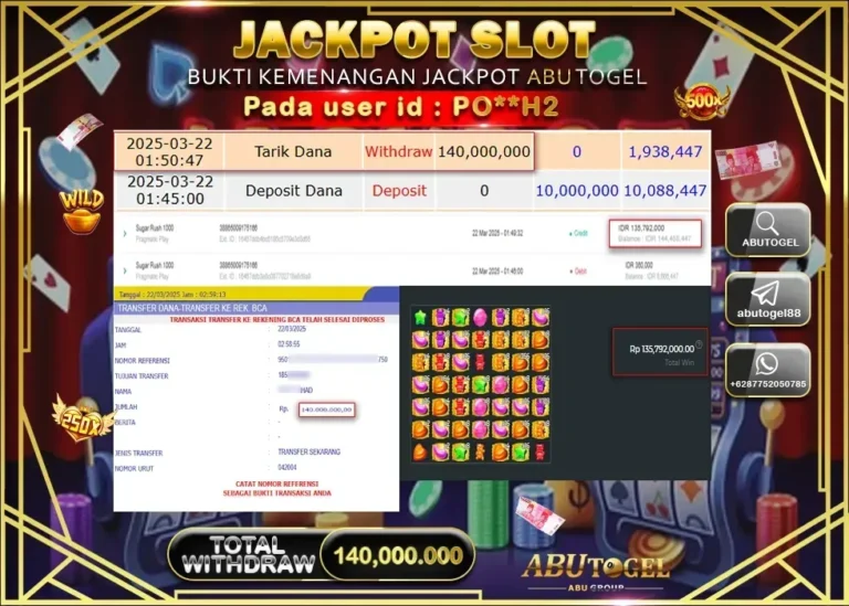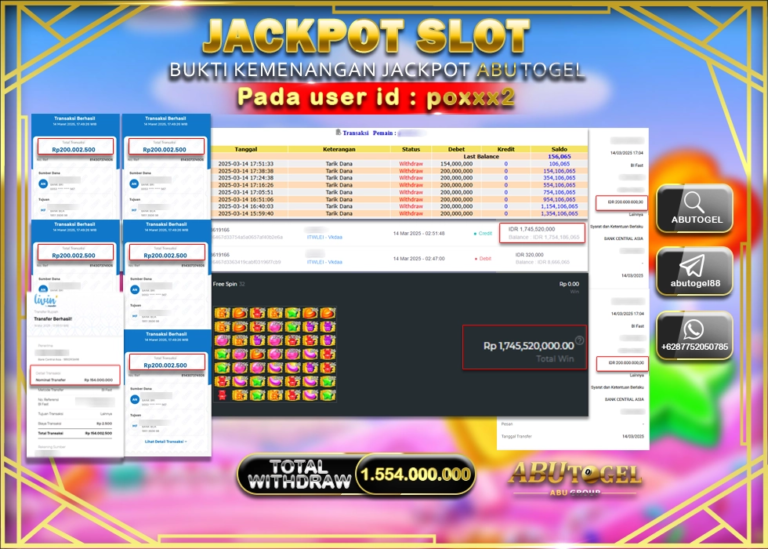 Bukti Jackpot ABUTOGEL Slot Online Sabtu 22 Maret 2025 - ABUTOGEL adalah situs slot gacor maxwin terpercaya. Berikut ini kami berikan...