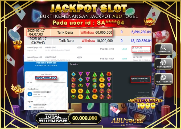 Bukti Jackpot ABUTOGEL Slot Online Senin 17 Maret 2025 - ABUTOGEL adalah situs slot gacor maxwin terpercaya. Berikut ini kami berikan...