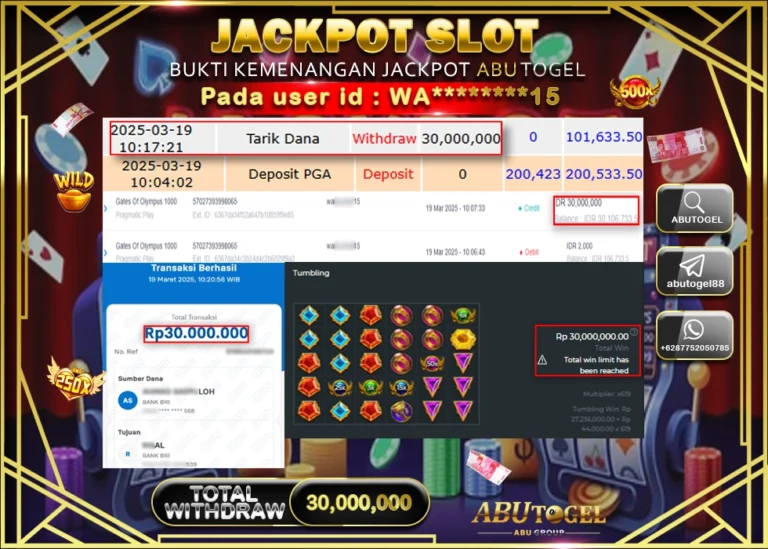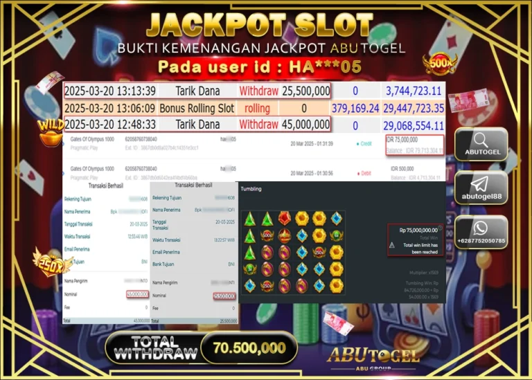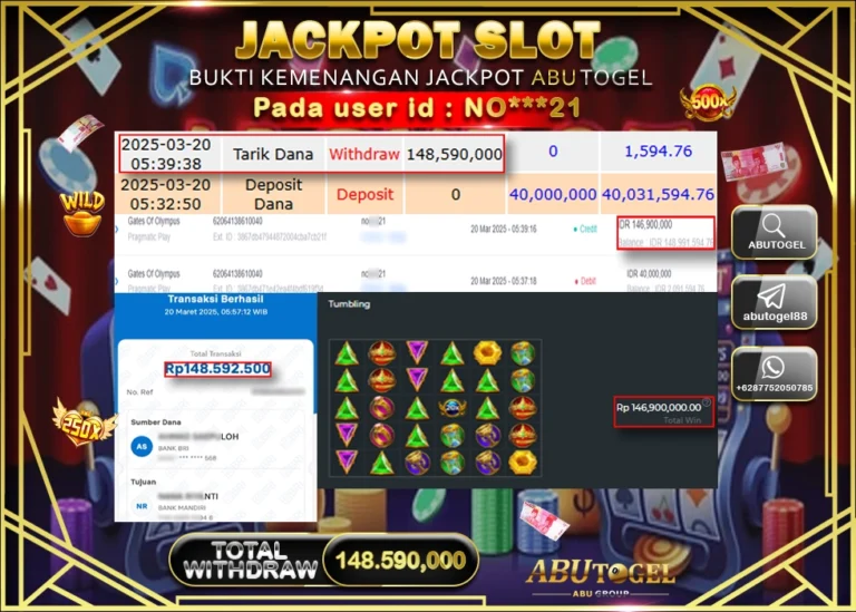 Bukti Jackpot ABUTOGEL Slot Online Kamis 20 Maret 2025 - ABUTOGEL adalah situs slot gacor maxwin terpercaya. Berikut ini kami berikan...