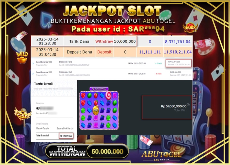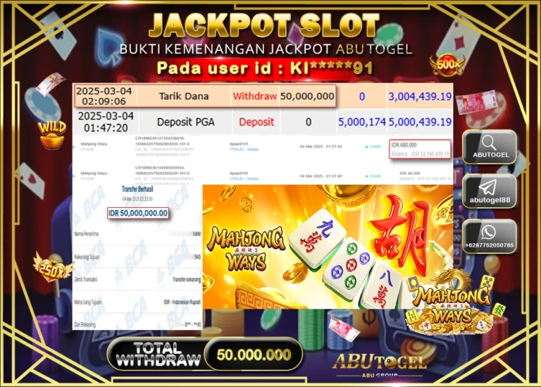 Bukti Jackpot ABUTOGEL Slot Online Sabtu 08 Maret 2025 - ABUTOGEL adalah situs slot gacor maxwin terpercaya. Berikut ini kami berikan...
