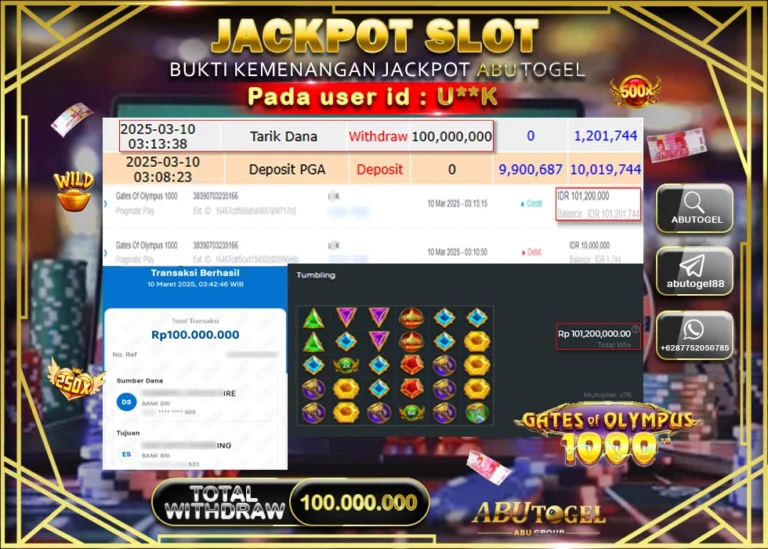 Bukti Jackpot ABUTOGEL Slot Online Kamis 13 Maret 2025 - ABUTOGEL adalah situs slot gacor maxwin terpercaya. Berikut ini kami berikan...