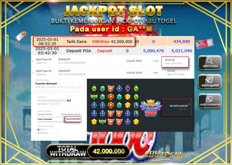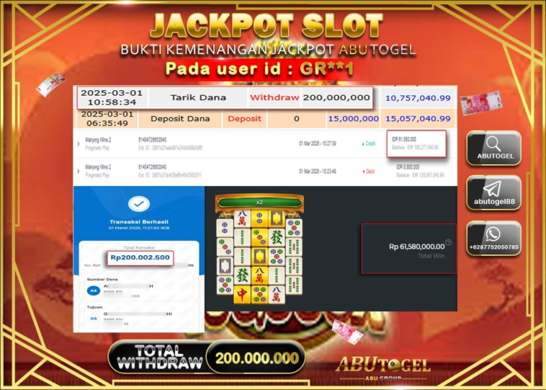Bukti Jackpot ABUTOGEL Live Casino Minggu 02 Maret 2025 - ABUTOGEL adalah situs live casino terpercaya. Berikut ini kami berikan info...