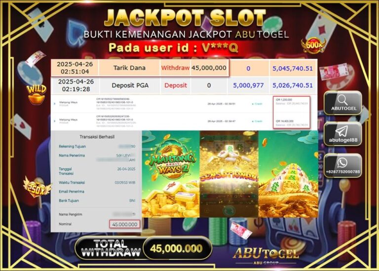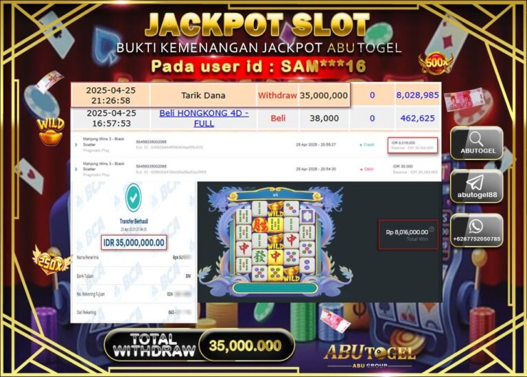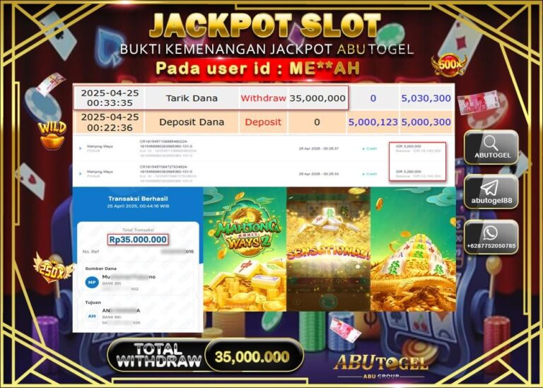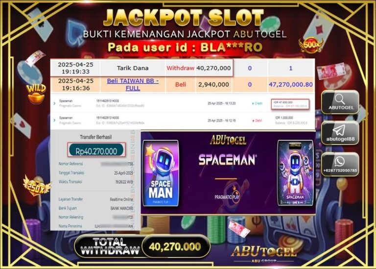 Bukti Jackpot ABUTOGEL Slot Online Minggu 27 April 2025 - ABUTOGEL adalah situs slot gacor maxwin terpercaya. Berikut ini kami berikan...