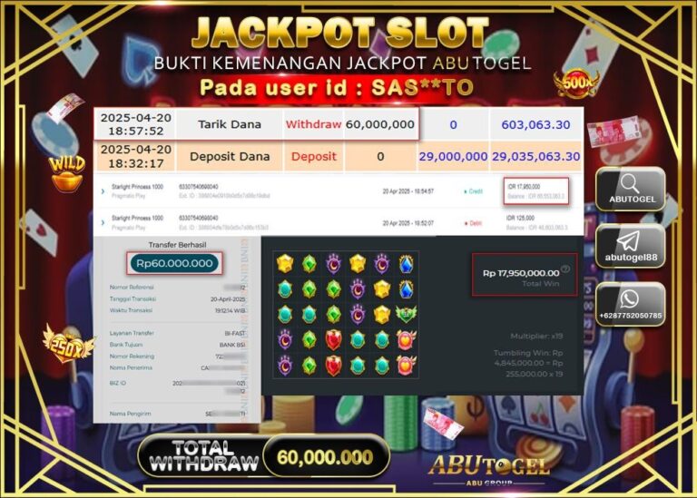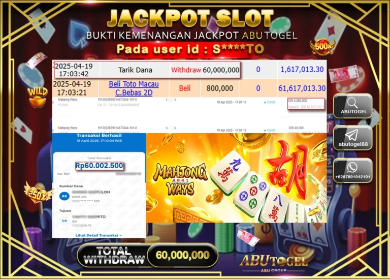 Bukti Jackpot ABUTOGEL Slot Online Sabtu 19 April 2025 - ABUTOGEL adalah situs slot gacor maxwin terpercaya. Berikut ini kami berikan...