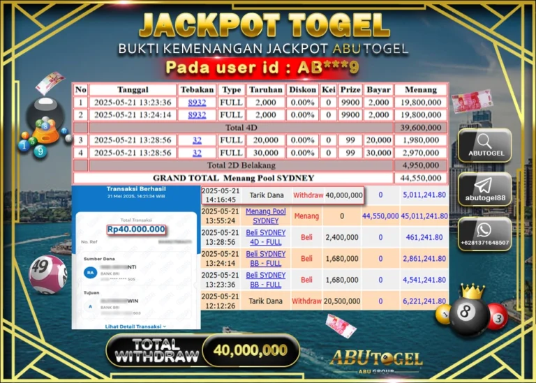 Bukti Jackpot Togel Online ABUTOGEL Rabu 21 Mei 2025 - ABUTOGEL adalah bo togel onlinne terpercaya. Berikut ini kami berikan info...