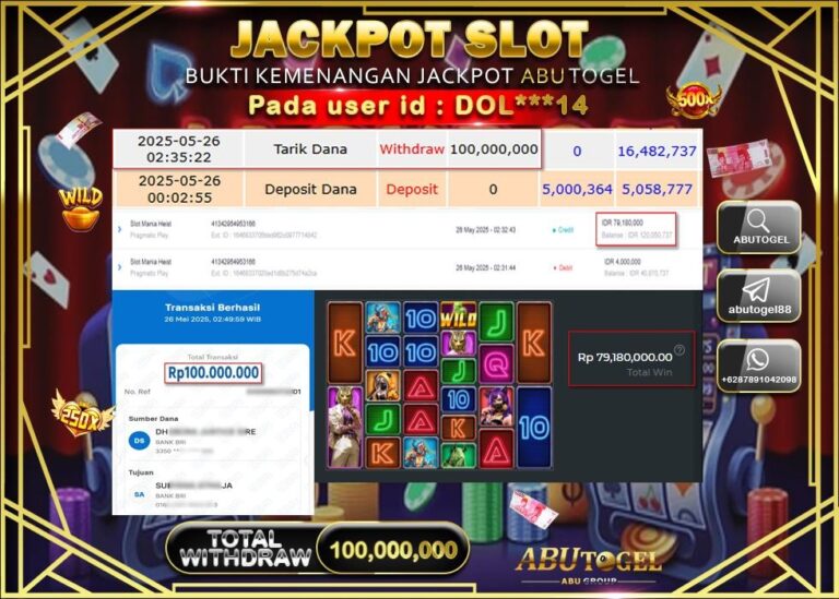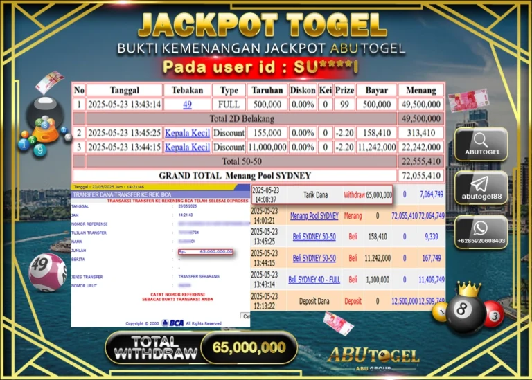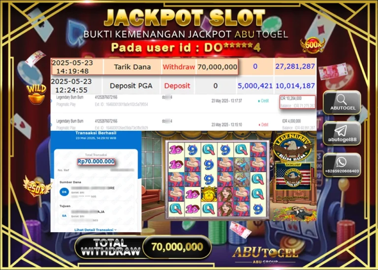 Bukti Jackpot ABUTOGEL Slot Online Jumat 23 Mei 2025 - ABUTOGEL adalah situs slot gacor maxwin terpercaya. Berikut ini kami berikan...