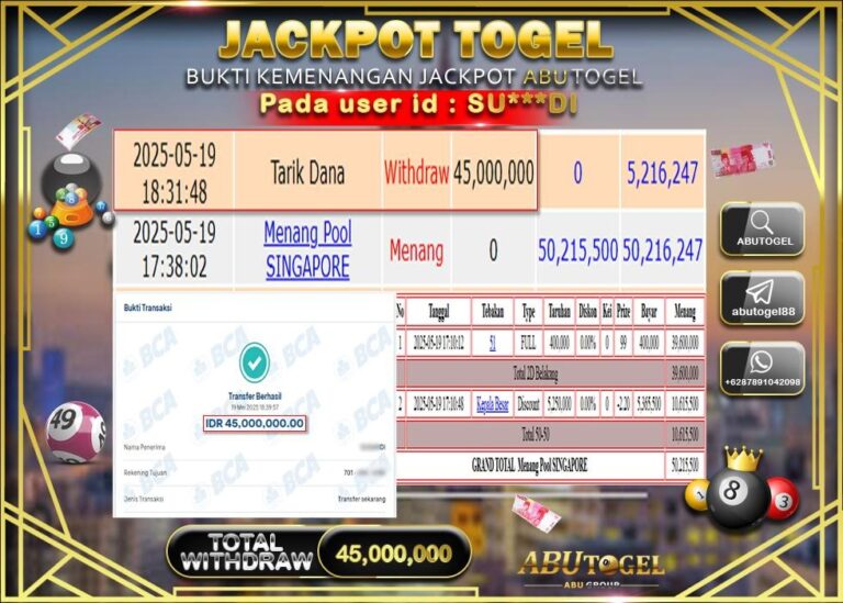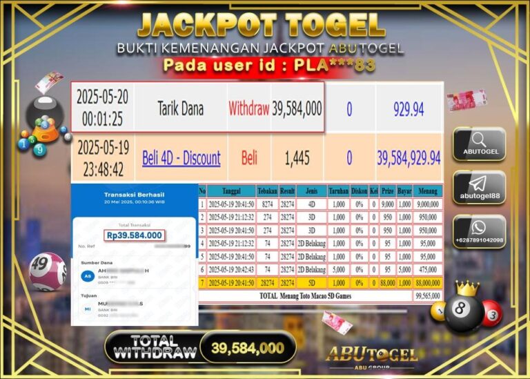 Bukti Jackpot Togel Online ABUTOGEL Selasa 20 Mei 2025 - ABUTOGEL adalah bo togel onlinne terpercaya. Berikut ini kami berikan info...