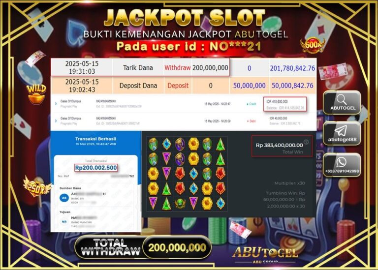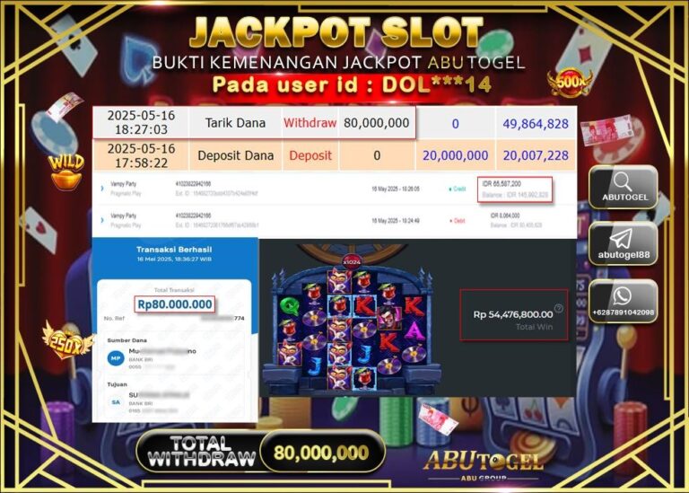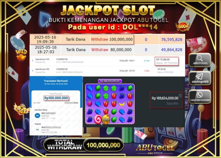 Bukti Jackpot ABUTOGEL Slot Online Jumat 16 Mei 2025 - ABUTOGEL adalah situs slot gacor maxwin terpercaya. Berikut ini kami berikan...