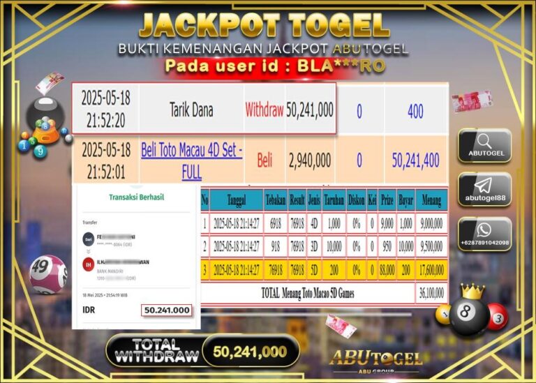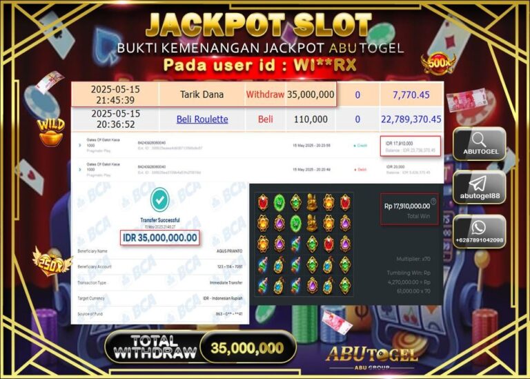 Bukti Jackpot ABUTOGEL Slot Online Sabtu 17 Mei 2025 - ABUTOGEL adalah situs slot gacor maxwin terpercaya. Berikut ini kami berikan...