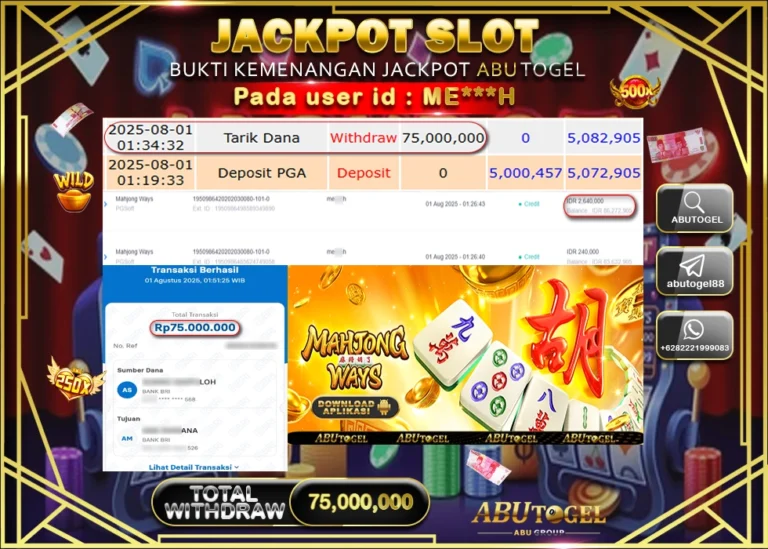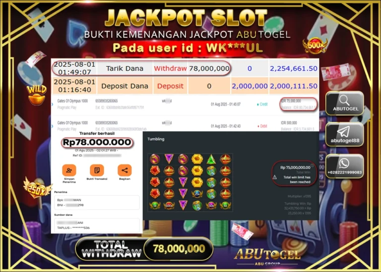 Bukti Jackpot ABUTOGEL Slot Online Jumat 01 Agustus 2025 - ABUTOGEL adalah situs slot gacor maxwin terpercaya. Berikut ini kami berikan...