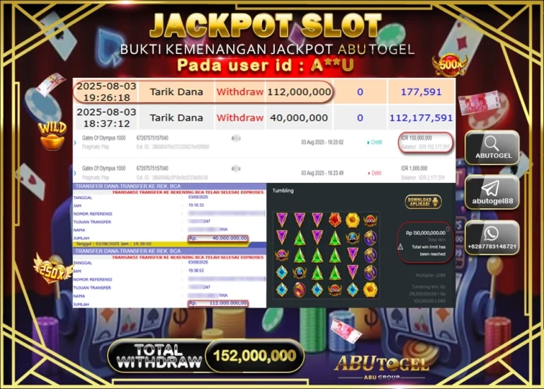 Bukti Jackpot ABUTOGEL Slot Online Minggu 03 Agustus 2025 - ABUTOGEL adalah situs slot gacor maxwin terpercaya. Berikut ini kami berikan...