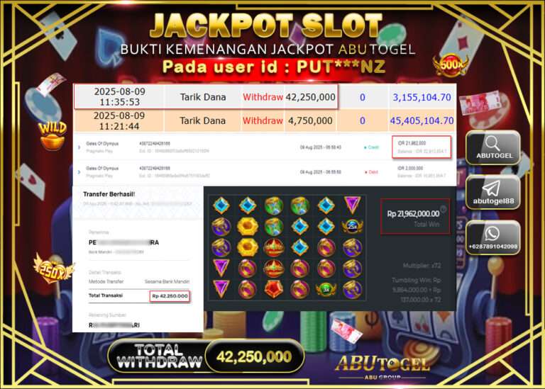 Bukti Jackpot ABUTOGEL Slot Online Sabtu 09 Agustus 2025 - ABUTOGEL adalah situs slot gacor maxwin terpercaya. Berikut ini kami berikan...