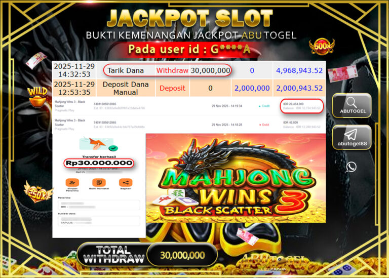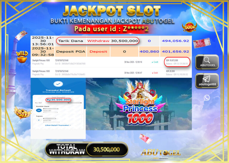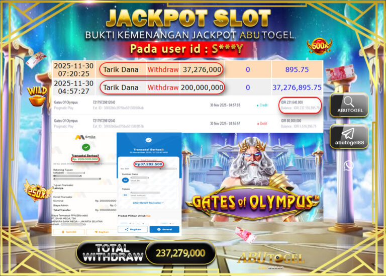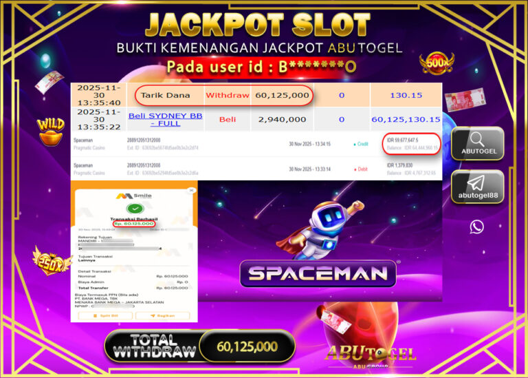 Bukti Jackpot Slot Online ABUTOGEL Minggu 30 November 2025 - ABUTOGEL adalah bo togel onlinne terpercaya. Berikut ini kami berikan...
