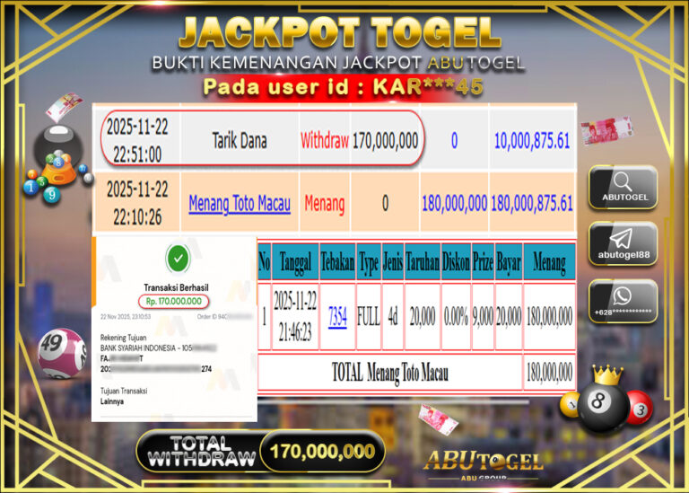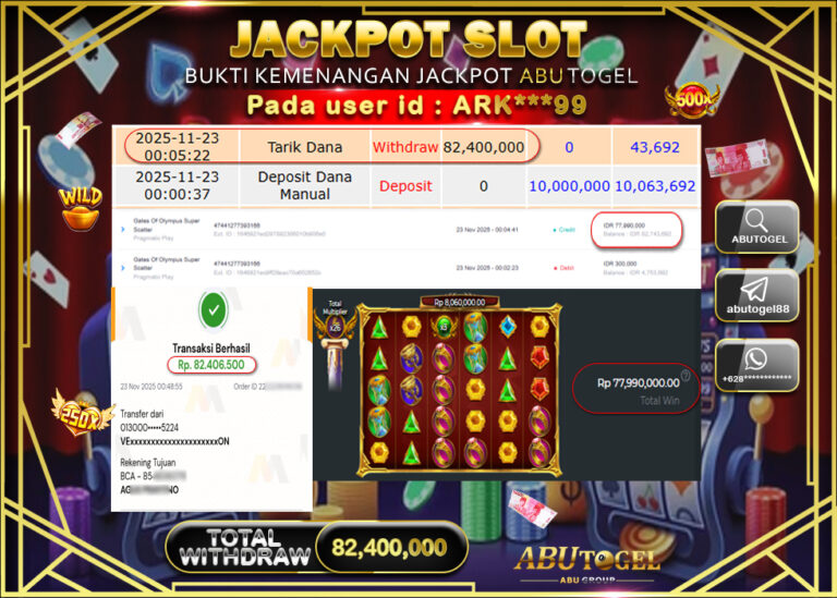 Bukti Jackpot Slot Online ABUTOGEL Minggu 23 November 2025 - ABUTOGEL adalah bo togel onlinne terpercaya. Berikut ini kami berikan...