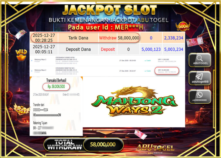Bukti Jackpot Slot Online ABUTOGEL Sabtu 27 Desember 2025 - ABUTOGEL adalah bo togel onlinne terpercaya. Berikut ini kami berikan...