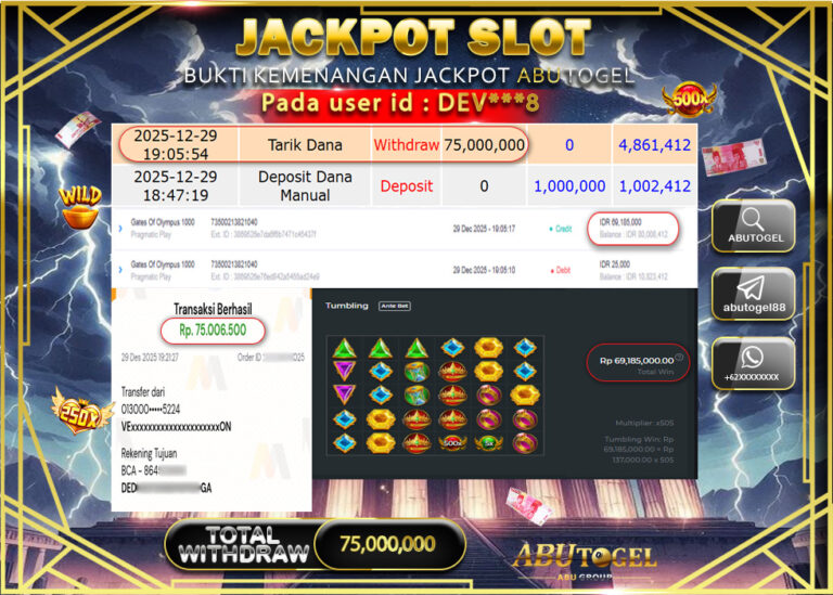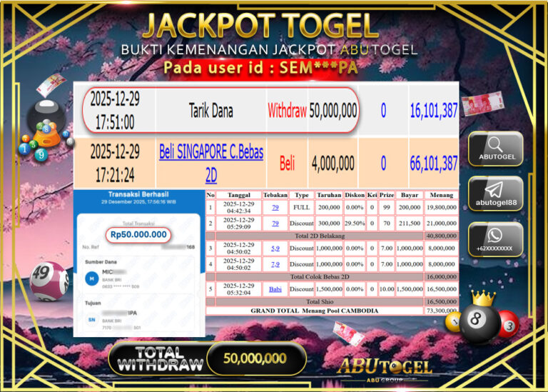 Bukti Jackpot Slot Online ABUTOGEL Selasa 30 Desember 2025 - ABUTOGEL adalah bo togel onlinne terpercaya. Berikut ini kami berikan...