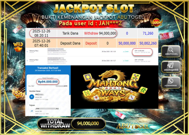 Bukti Jackpot Slot Online ABUTOGEL Sabtu 27 Desember 2025 - ABUTOGEL adalah bo togel onlinne terpercaya. Berikut ini kami berikan...