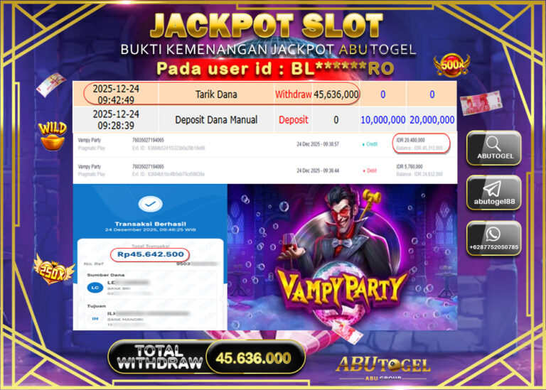 Bukti Jackpot Slot Online ABUTOGEL Rabu 24 Desember 2025 - ABUTOGEL adalah bo togel onlinne terpercaya. Berikut ini kami berikan...