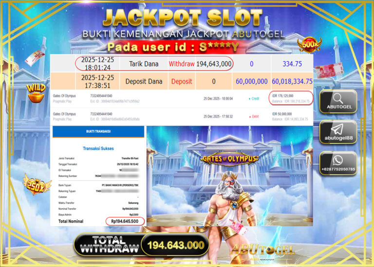 Bukti Jackpot Slot Online ABUTOGEL Kamis 25 Desember 2025 - ABUTOGEL adalah bo togel onlinne terpercaya. Berikut ini kami berikan...