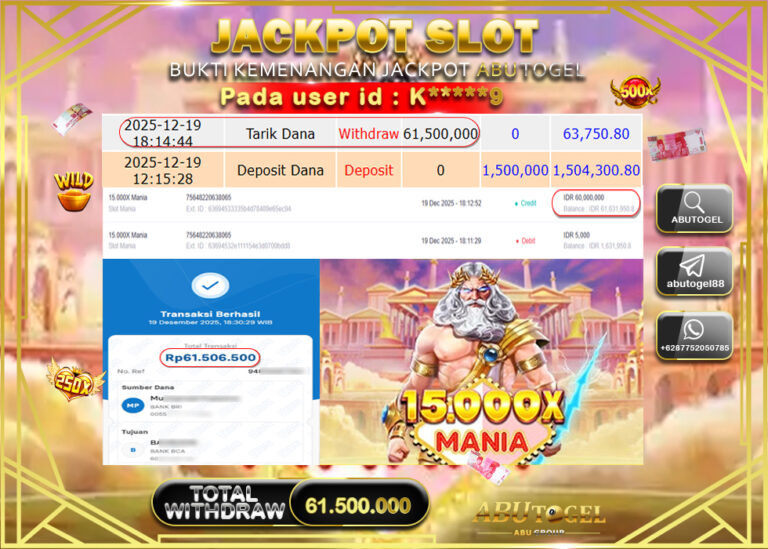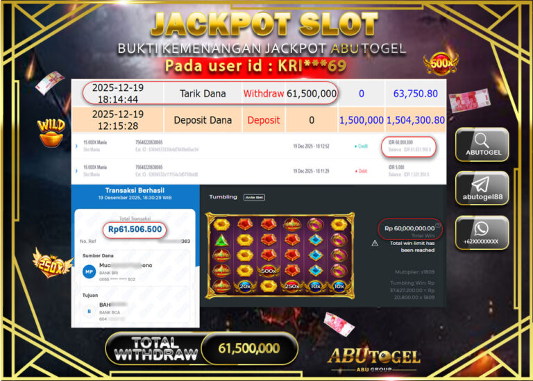 Bukti Jackpot Slot Online ABUTOGEL Jumat 19 Desember 2025 - ABUTOGEL adalah bo togel onlinne terpercaya. Berikut ini kami berikan...