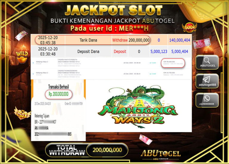 Bukti Jackpot Slot Online ABUTOGEL Sabtu 20 Desember 2025 - ABUTOGEL adalah bo togel onlinne terpercaya. Berikut ini kami berikan...