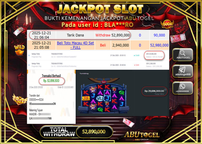 Bukti Jackpot Slot Online ABUTOGEL Minggu 21 Desember 2025 - ABUTOGEL adalah bo togel onlinne terpercaya. Berikut ini kami berikan...