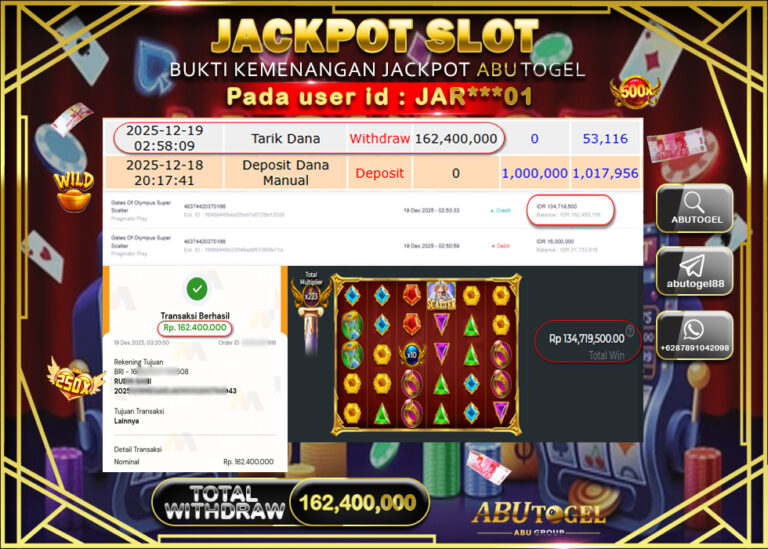 Bukti Jackpot Slot Online ABUTOGEL Jumat 19 Desember 2025 - ABUTOGEL adalah bo togel onlinne terpercaya. Berikut ini kami berikan...