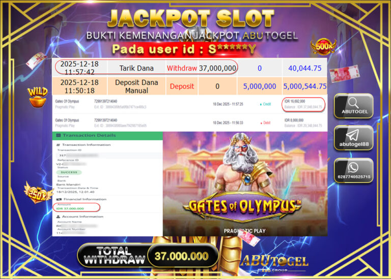 Bukti Jackpot Slot Online ABUTOGEL Kamis 18 Desember 2025 - ABUTOGEL adalah bo togel onlinne terpercaya. Berikut ini kami berikan...