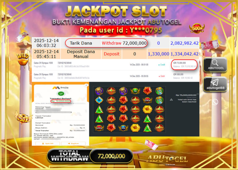 Bukti Jackpot Slot Online ABUTOGEL Minggu 14 Desember 2025 - ABUTOGEL adalah bo togel onlinne terpercaya. Berikut ini kami berikan...