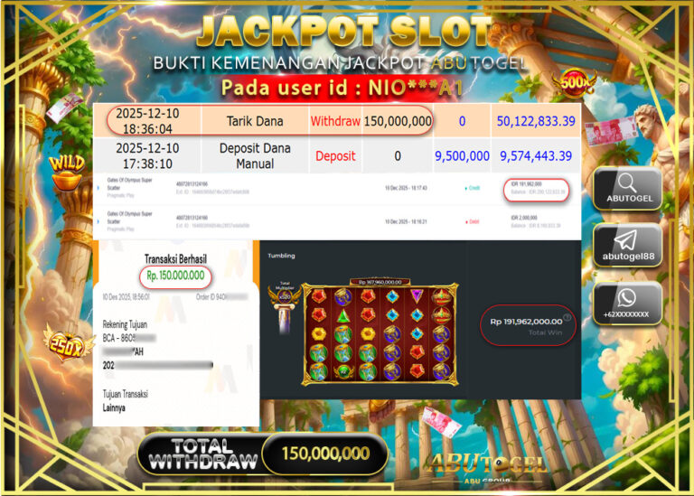 Bukti Jackpot Slot Online ABUTOGEL Rabu 10 Desember 2025 - ABUTOGEL adalah bo togel onlinne terpercaya. Berikut ini kami berikan...