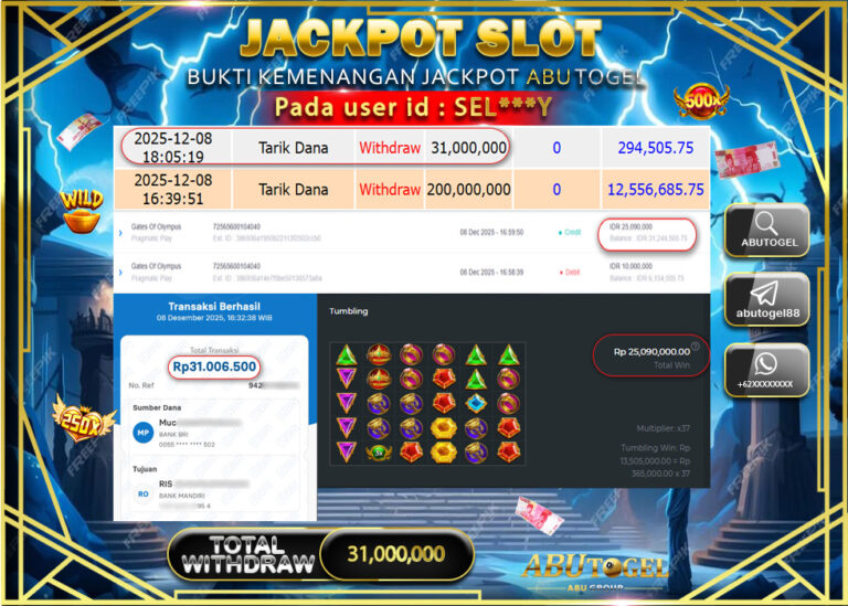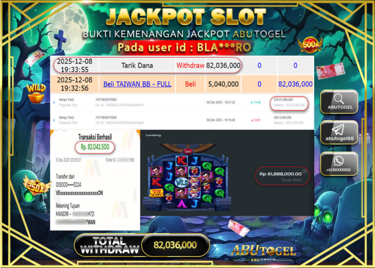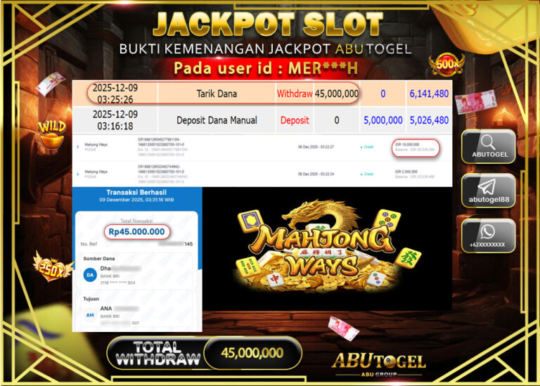 Bukti Jackpot Slot Online ABUTOGEL Selasa 09 Desember 2025 - ABUTOGEL adalah bo togel onlinne terpercaya. Berikut ini kami berikan...