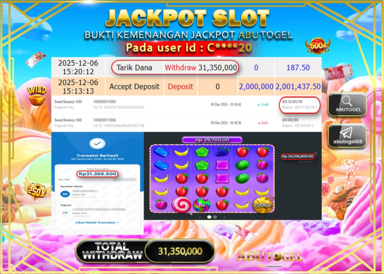 Bukti Jackpot Slot Online ABUTOGEL Minggu 07 Desember 2025 - ABUTOGEL adalah bo togel onlinne terpercaya. Berikut ini kami berikan...