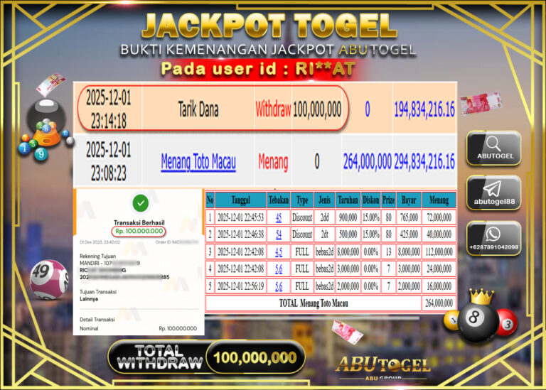 Bukti Jackpot Slot Online ABUTOGEL Senin 01 Desember 2025 - ABUTOGEL adalah bo togel onlinne terpercaya. Berikut ini kami berikan...