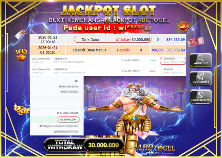 Bukti Jackpot Slot Online ABUTOGEL Rabu 21 January 2026 - ABUTOGEL adalah bo togel onlinne terpercaya. Berikut ini kami berikan...