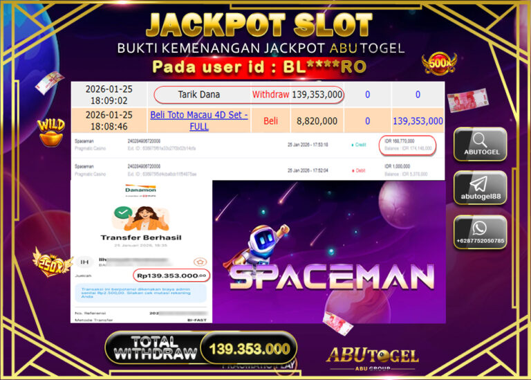 Bukti Jackpot Slot Online ABUTOGEL Minggu 25 January 2026 - ABUTOGEL adalah bo togel onlinne terpercaya. Berikut ini kami berikan...