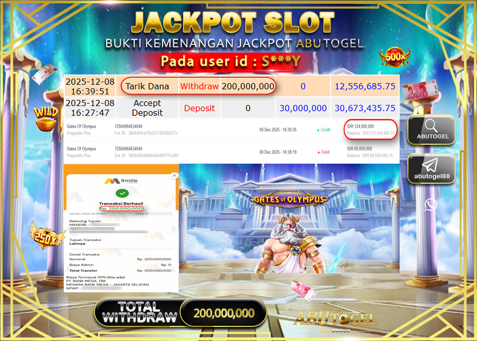 Berikut adalah Bukti Jackpot Slot Online ABUTOGEL Jumat 12 Desember 2025 :