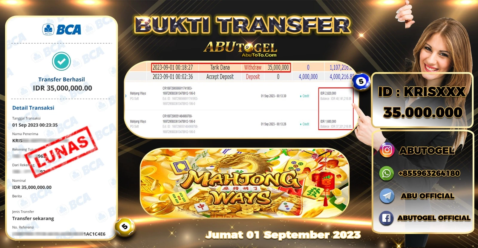 Bukti transfer yang kami publis adalah bukti kemengan player di atas 30 juta dan sudah kami bayar lunas tanpa di cicil. Untuk bukti pembayaran lainnya kalian dapat langsung melihatnya di group facebook resmi abutogel.