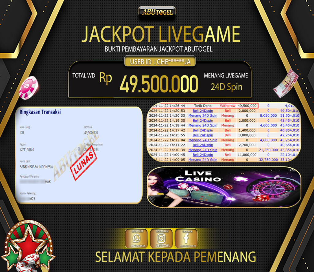 Bukti Jackpot ABUTOGEL Live Casino Jumat 22 November 2024
