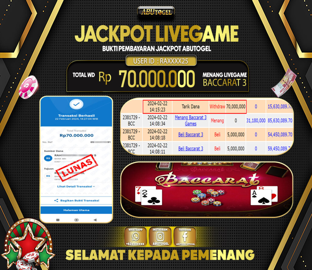 3 min readBukti Jackpot ABUTOGEL Live Casino Kamis 22 Februari 2024 – ABUTOGEL adalah situs live casino terpercaya. Berikut ini kami berikan info buktu jackpot member abutogel yang sudah kami bayar lunas dalam permainan live casino.